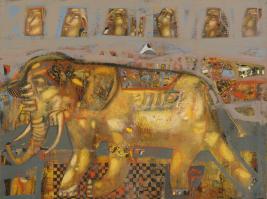 Mykola Zhuravel breaks the boundaries between painting, sculpture, performance and installation art by turning to nature to create thriving monuments to man's links to the Earth. He searches for compatibility between Earth and mankind, while pointedly making reference to the obstacles that human beings have placed in the way of a harmonious existence. Zhuravel's ambitious style results in a remarkable series of living images of a visionary utopia, ranging from his beehive sculptures to his thought provoking paintings. Born into a family of beekeepers, Zhuravel incorporates elements and products of beekeeping with traditional media into his work. He  uses honey, beeswax, and the actual beehive itself, along with other unusual media, such as tea and wine to create unique works of art. The exquisite conceptual works present a deeply affecting array of images based on the age-old practice of nurturing honeybees. Equally striking are Zhuravel's paintings. By using levkas, a traditional primer employed by icon painters, Zhuravel unites the legacies of Byzantine and Rus icon painting with his contemporary painterly technique. This results in richly vibrant and inventive contemporary works that emerge as modern-day icons.